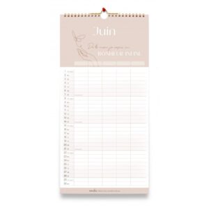 Un calendrier mural conçu spécialement pour les familles modernes ! Organisez efficacement les emplois du temps de chacun grâce à ses cinq colonnes spacieuses. Ce calendrier offre une vue d’ensemble claire et pratique pour toute la semaine.
